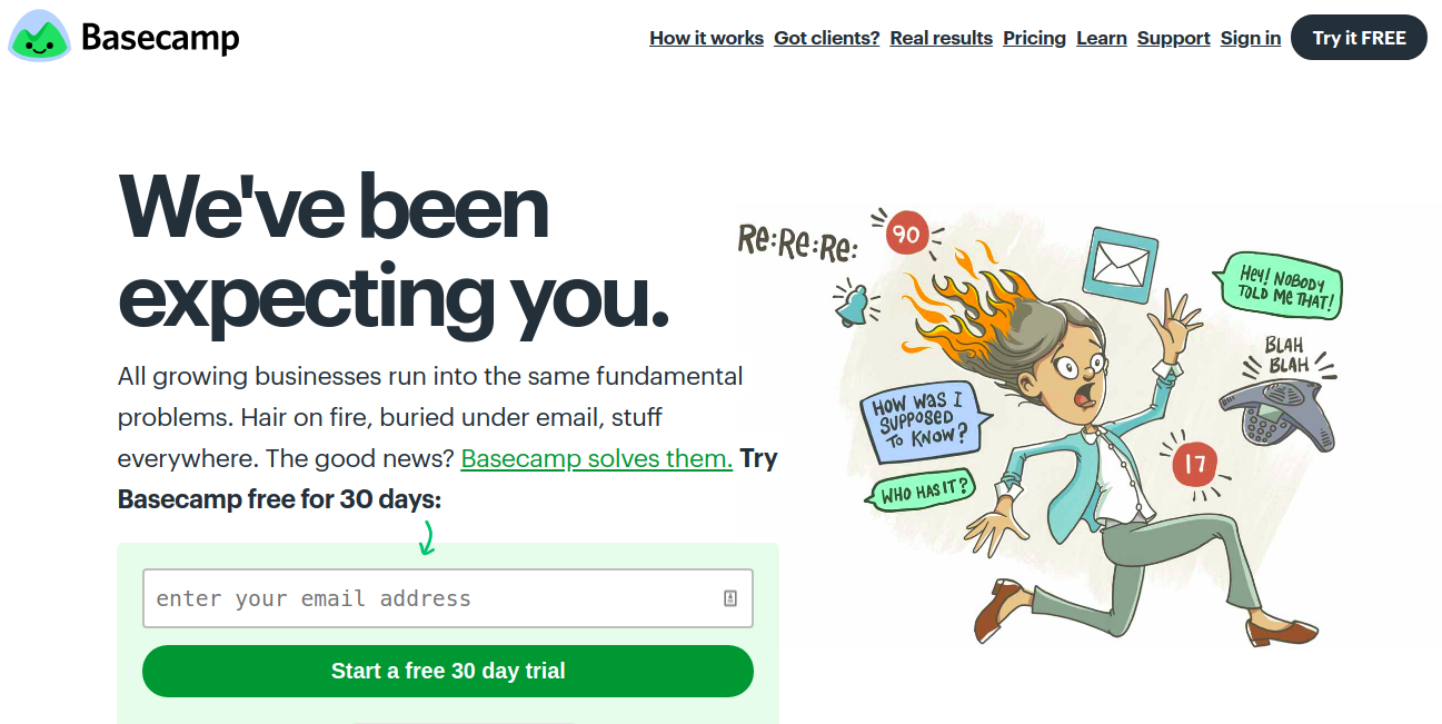After recognizing the problem and restoring the sign-up functionality, ratings spiked back up. Basecamp maintained this approach on their homepage for years, only recently changing it to a call-to-action button format.